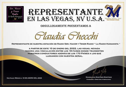 Radio "Ser, Hacer y Tener Radio” - La Radio Humanista. Desde el 2022, Las Vegas Nevada tendrá una vinculacion entre 18 paises donde se transmite.